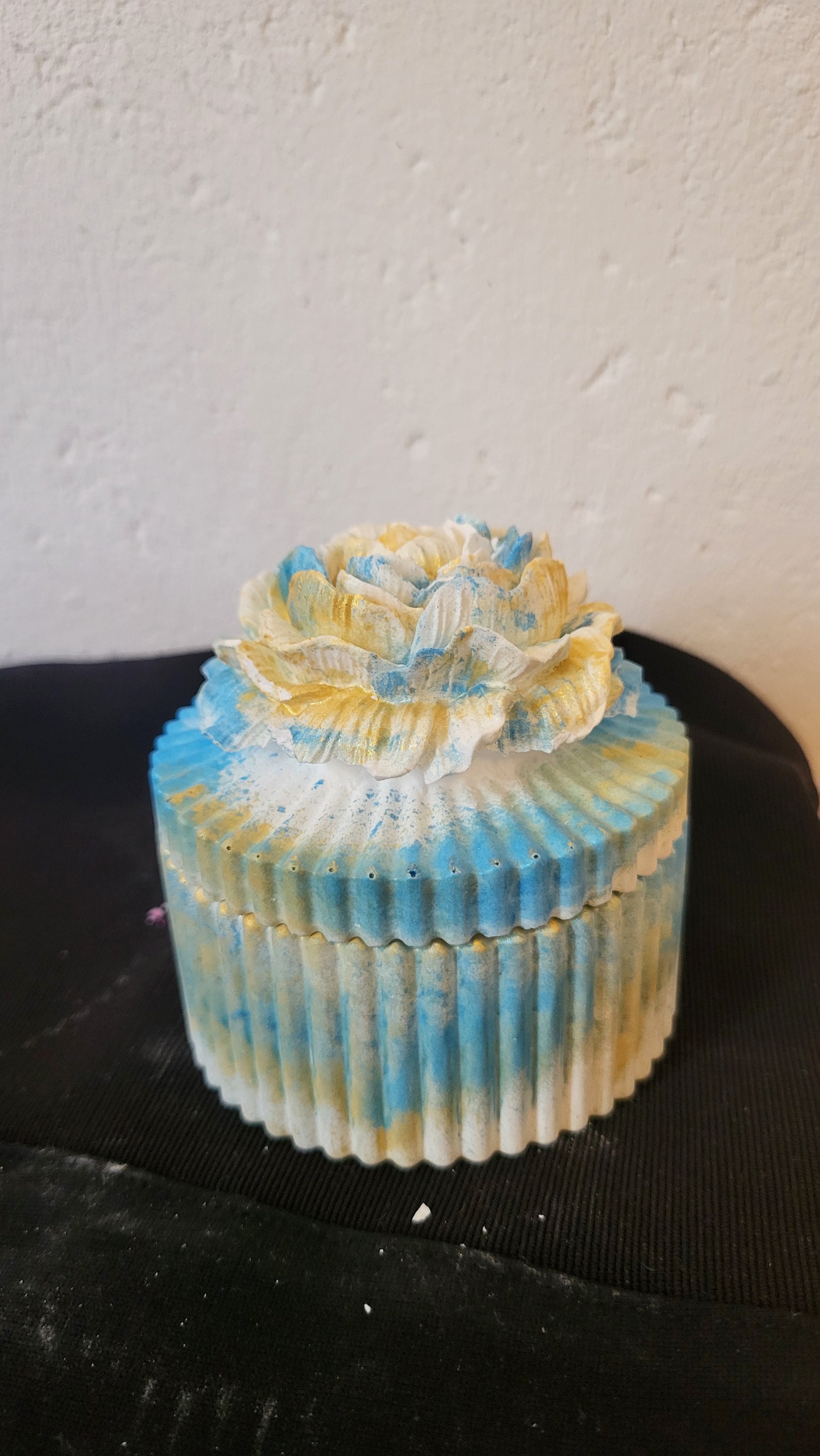 Chaque bougie est coulée en cire de soja naturelle, parfumée, et présentée dans un écrin décoratif orné d’une superbe fleur en relief 🌺.